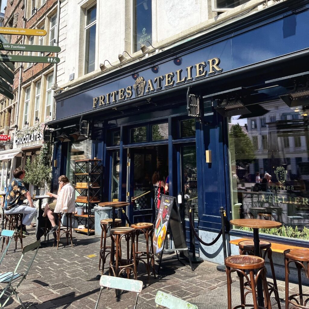 Si querés probar unas papas fritas realmente buenas, te recomiendo que vayas al Frites Atelier, uno de los mejores lugares dónde comer en Gante para comer papas fritas. Acá podés elegir entre varias salsas —desde la clásica mayonesa hasta opciones más creativas— y, sinceramente, es una parada obligatoria. Las raciones son generosas y los precios son bastante accesibles, rondando entre los 8 y los 10 euros.