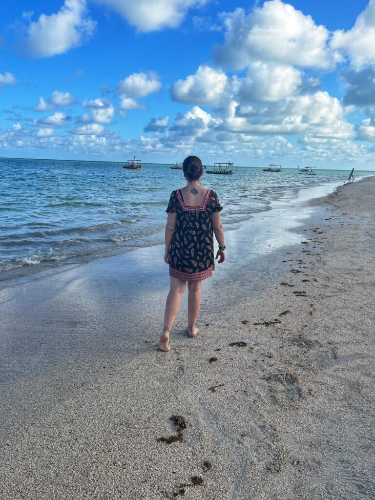 Es una de las complicaciones que tiene viajar al nordeste brasileño, que dependés de la marea y es algo que no podés organizar de antemano. La marea cambia todas las semanas y en nuestro caso, los tres días que estuvimos en Maragogi, la marea baja no era tan baja, entonces no pudimos disfrutar este sendero que dicen que es soñado.