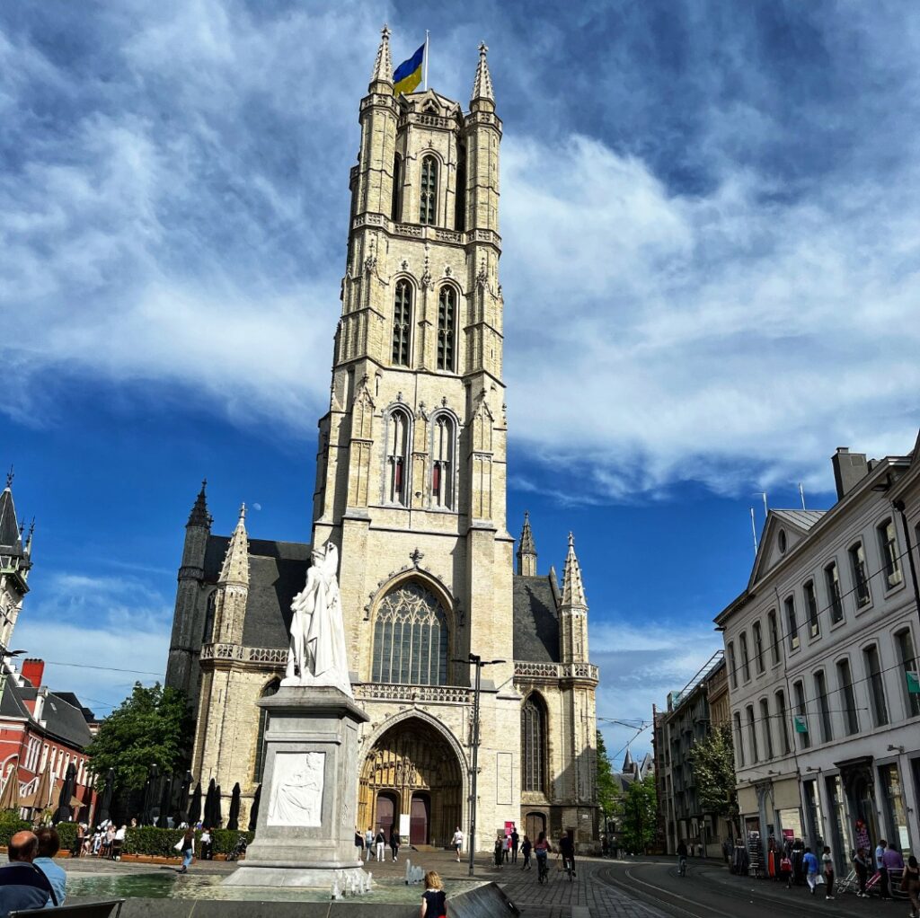 Próxima parada, Catedral de San Bavón. Este imponente templo es uno de los símbolos de la ciudad y alberga la famosa obra «La adoración del cordero místico», una obra del arte flamenco.