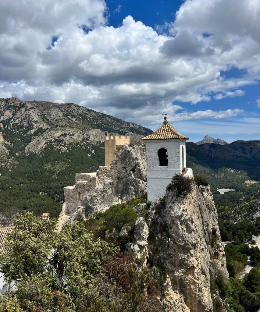 Este castillo del siglo XI, de origen musulmán, está literalmente colgado de la roca y es uno de los imperdible que ver en Guadalest. Fue construido por los musulmanes en una posición estratégica para controlar el valle de Guadalest y vigilar posibles incursiones, ya que desde lo alto se domina toda la región. Más que un castillo residencial, funcionaba como fortaleza defensiva.