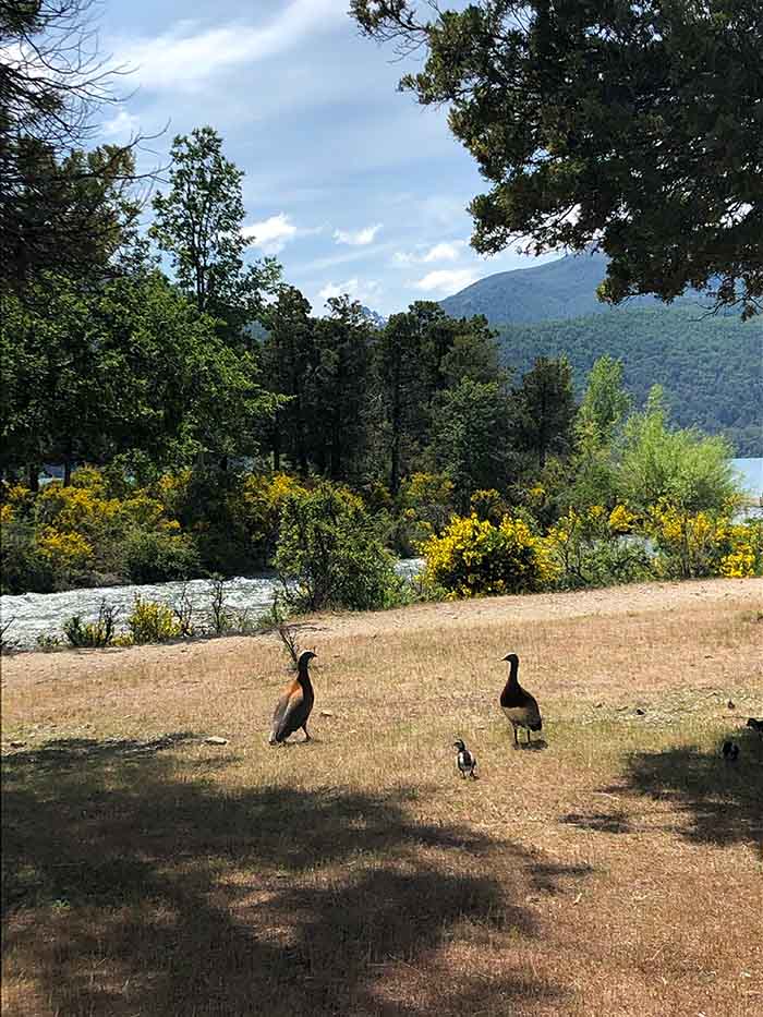 Es una zona hermosa con mucha sombra y a orillas del arroyo. En un momento de aburrimiento infantil y ansiedad por almorzar, salimos a caminar con los dos más pequeños costeando el río que desemboca al Lago Lácar. Es alucinante estar en medio de la naturaleza con los niños observando y asombrados de toda la belleza que ven.